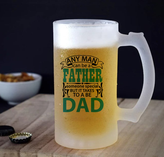 Το ποτήρι μπίρας με το μήνυμα “Any Man Can Be a Father, It Takes Someone Special to Be a Dad” εκφράζει την ουσία της αληθινής πατρότητας.