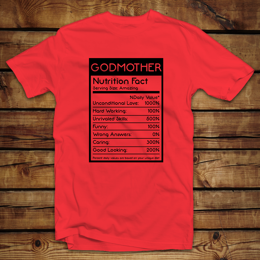 Χαρίστε χαμόγελα στη νονά σας με το μπλουζάκι “Godmother Nutrition Facts”.