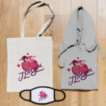 > Υφασμάτινη μάσκα ασπρόμαυρη με βαμβακερή εσωτερική πλευρά, εξωτερική από πολυεστέρα, και διαστάσεις 20cm πλάτος / 14cm ύψος.