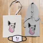 > Υφασμάτινη μάσκα ασπρόμαυρη με βαμβακερή εσωτερική πλευρά, εξωτερική από πολυεστέρα, και διαστάσεις 20cm πλάτος / 14cm ύψος.
