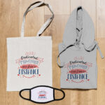 > Υφασμάτινη μάσκα ασπρόμαυρη με βαμβακερή εσωτερική πλευρά, εξωτερική από πολυεστέρα, και διαστάσεις 20cm πλάτος / 14cm ύψος.