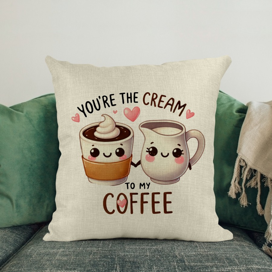 Το Cream to my Coffee είναι το ιδανικό διακοσμητικό μαξιλάρι για ζευγάρια που ταιριάζουν απόλυτα, όπως η κρέμα στον καφέ – ο τέλειος συνδυασμός που κάνει κάθε γουλιά πιο απολαυστική!