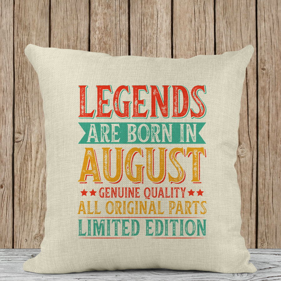 Το διακοσμητικό μαξιλάρι “Legends are born in August” είναι ένα ιδιαίτερο δώρο για να τιμήσετε όσους γεννήθηκαν αυτόν τον μήνα.