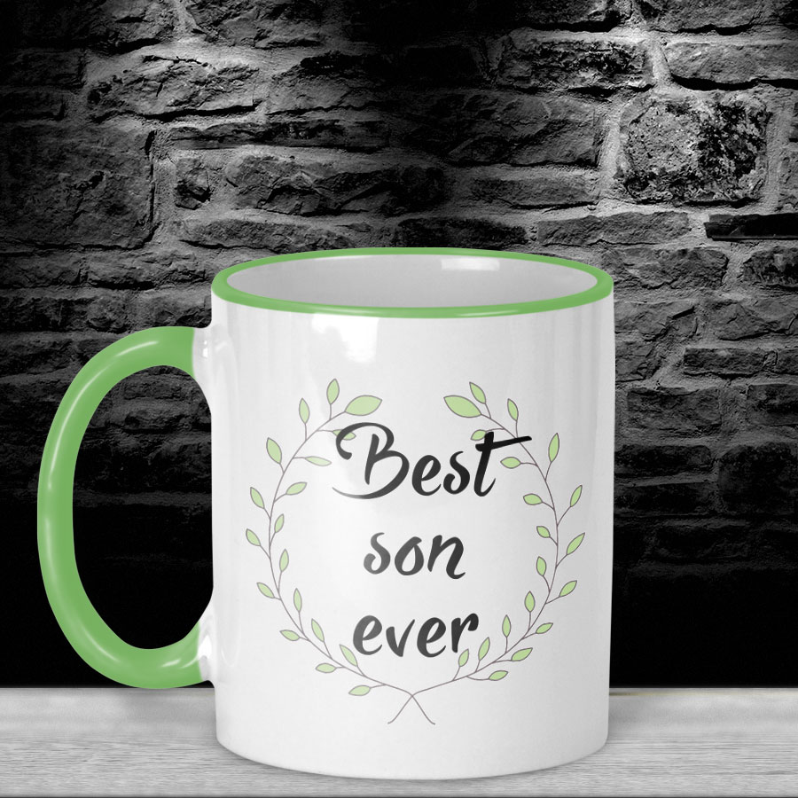 Διασκεδαστική δίχρωμη κούπα με το σχέδιο “Best Son Ever”, ιδανική για τον μικρό σας πρωταγωνιστή.