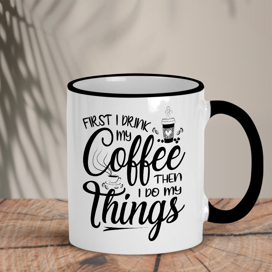 Η Δίχρωμη Κούπα | First I drink my coffee then I do my things είναι η τέλεια επιλογή για όσους ξέρουν ότι η παραγωγικότητα ξεκινά μόνο μετά την πρώτη γουλιά καφέ!