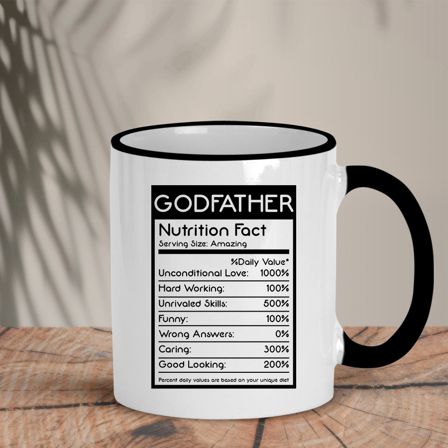 Δώστε στον νονό σας ένα πρωτότυπο και χιουμοριστικό δώρο με τη δίχρωμη κούπα “Godfather Nutrition fact”.