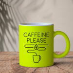Η Φωσφοριζέ Κίτρινη Κούπα | Caffeine please είναι ιδανική για όσους ξέρουν ότι η μέρα τους δεν μπορεί να ξεκινήσει σωστά χωρίς την απαραίτητη δόση καφεΐνης!