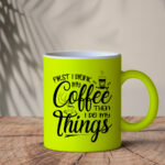 Η Φωσφοριζέ Κίτρινη Κούπα | First I drink my coffee then I do my things είναι ιδανική για όσους ξέρουν ότι η παραγωγικότητα ξεκινά μόνο μετά την πρώτη γουλιά καφέ!