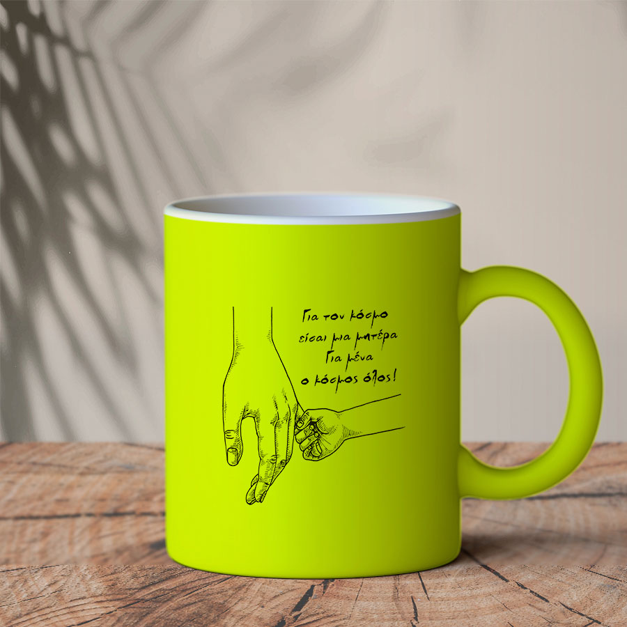 Η Φωσφοριζέ Κούπα Κίτρινη | Για μένα ο κόσμος όλος είναι ένας τρυφερός τρόπος να υπενθυμίζετε καθημερινά στη μαμά σας πόσο πολύτιμη είναι για εσάς!