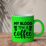 Η Φωσφοριζέ Πράσινη Κούπα | My blood type is Coffee είναι η τέλεια επιλογή για όσους θεωρούν τον καφέ κάτι παραπάνω από ρόφημα — είναι το αίμα τους!