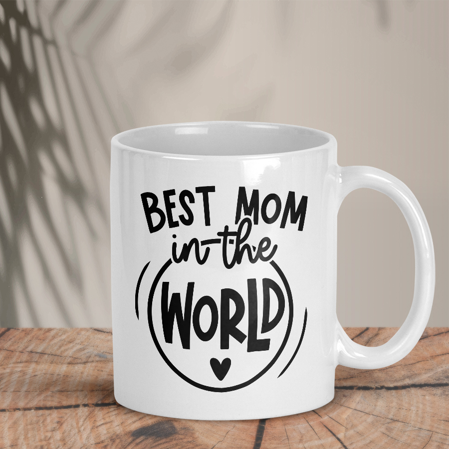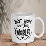 Δείξε στην αγαπημένη σου μαμά πόσο πολύ την εκτιμάς με αυτή την κλασική λευκή κούπα που γράφει “Best Mom in the World”.