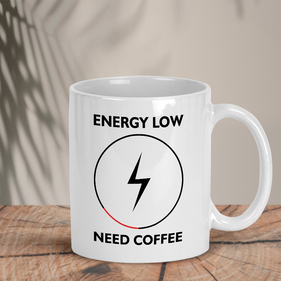 Η Λευκή Κούπα | Energy low – Need Coffee είναι η τέλεια επιλογή για τις μέρες που η ενέργειά σας είναι χαμηλή και χρειάζεστε μία γερή γουλιά καφέ!