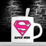 Κομψή λευκή κούπα με το σχέδιο “Super Mom”, τέλεια για τη μαμά που καταφέρνει τα πάντα με στυλ.
