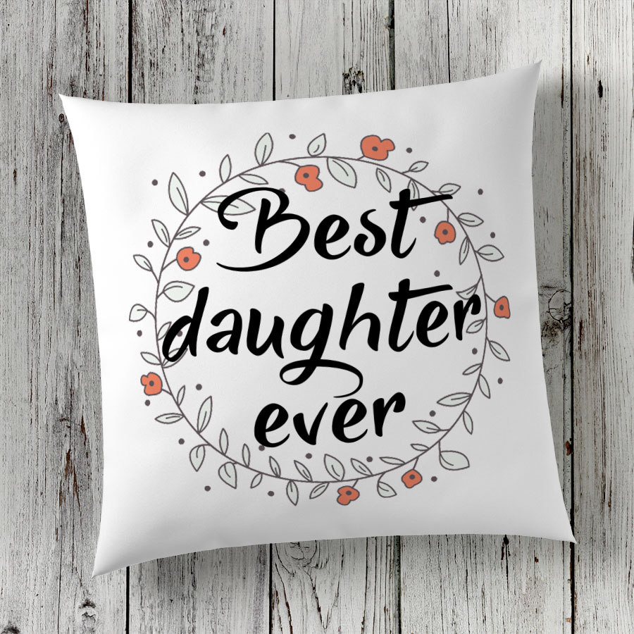 Λινό μαξιλάρι με το σχέδιο “Best Daughter Ever”, ιδανικό για να προσθέσει μια παιχνιδιάρικη πινελιά στη διακόσμηση.