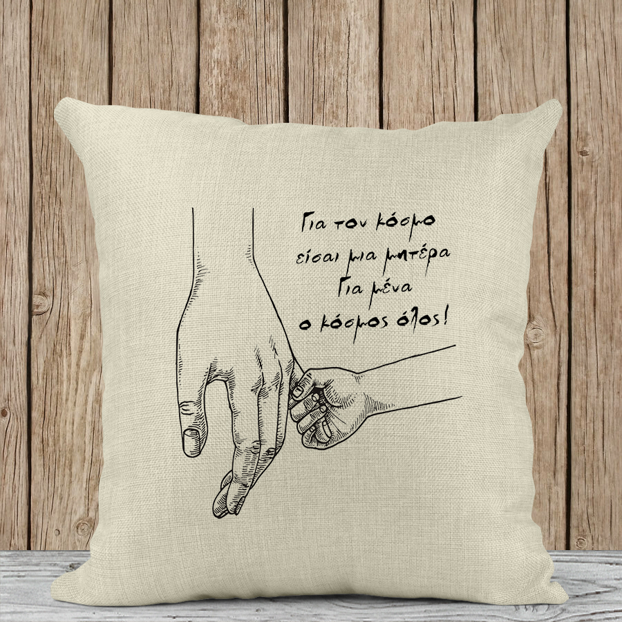 Το διακοσμητικό λινό μαξιλάρι “Για τον κόσμο είσαι μια μητέρα. Για μένα ο κόσμος όλος!” είναι το τέλειο δώρο για να εκφράσετε στη μαμά σας πόσο σημαντική είναι για εσάς.