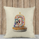 Γιορτάστε τα γενέθλια με άνεση και στυλ με το χαριτωμένο μας μαξιλαράκι από λινό με σχέδιο Happy Birthday κι έναν χαριτωμένο μονόκερο.
