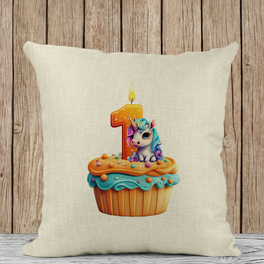 Γιορτάστε τα γενέθλια με άνεση και στυλ με το χαριτωμένο μας μαξιλαράκι από λινό με σχέδιο Happy Birthday κι έναν χαριτωμένο μονόκερο.