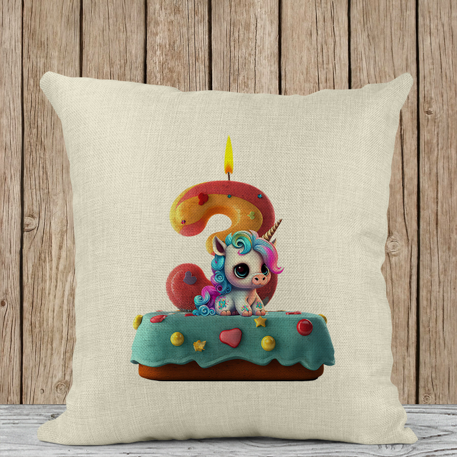 Γιορτάστε τα γενέθλια με άνεση και στυλ με το χαριτωμένο μας μαξιλαράκι από λινό με σχέδιο Happy Birthday κι έναν χαριτωμένο μονόκερο.