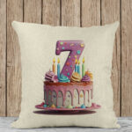 Τα έβδομα γενέθλια του παιδιού σας αξίζει να γιορταστούν με αυτό το χαρούμενο λινό μαξιλάρι “Happy Birthday”.