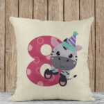 Αναδείξτε την 8η χρονιά του παιδιού με αυτό το υπέροχο λινό μαξιλάρι “Happy Birthday”.