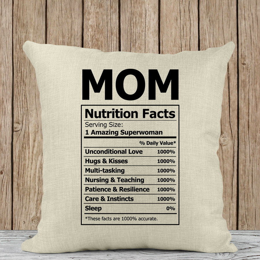 Το διακοσμητικό μαξιλάρι “Mom Nutrition Facts” είναι ο πιο διασκεδαστικός και πρωτότυπος τρόπος να τιμήσετε τη μαμά σας!