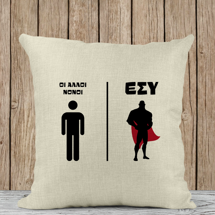 Χαρίστε στον νονό σας ένα μοναδικό δώρο με το λινό μαξιλάρι “Οι άλλοι νονοί – ΕΣΥ”.