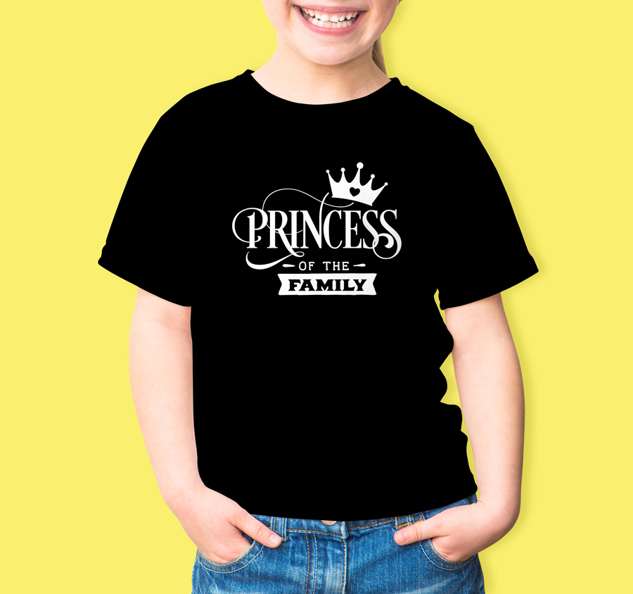 Χαριτωμένο μπλουζάκι με το σχέδιο “Princess of the Family”, ιδανικό για τη μικρή σας πριγκίπισσα.