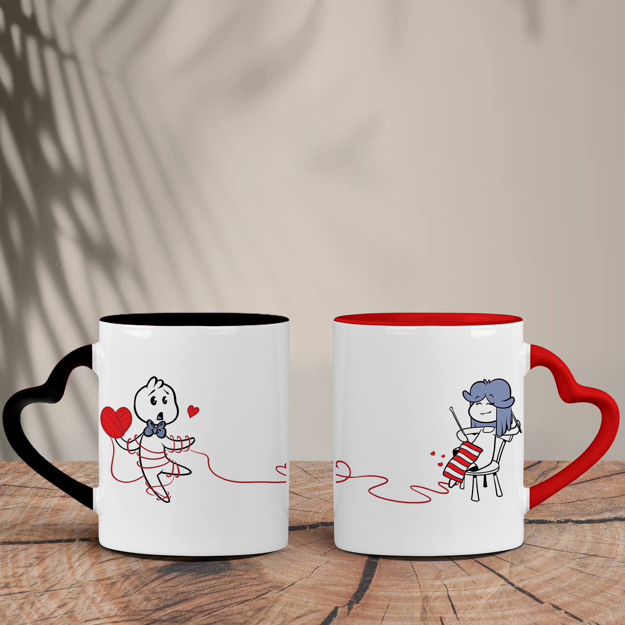 Το σετ περιλαμβάνει μία κούπα με μαύρη χειρολαβή σε σχήμα καρδιάς και μία με κόκκινη.