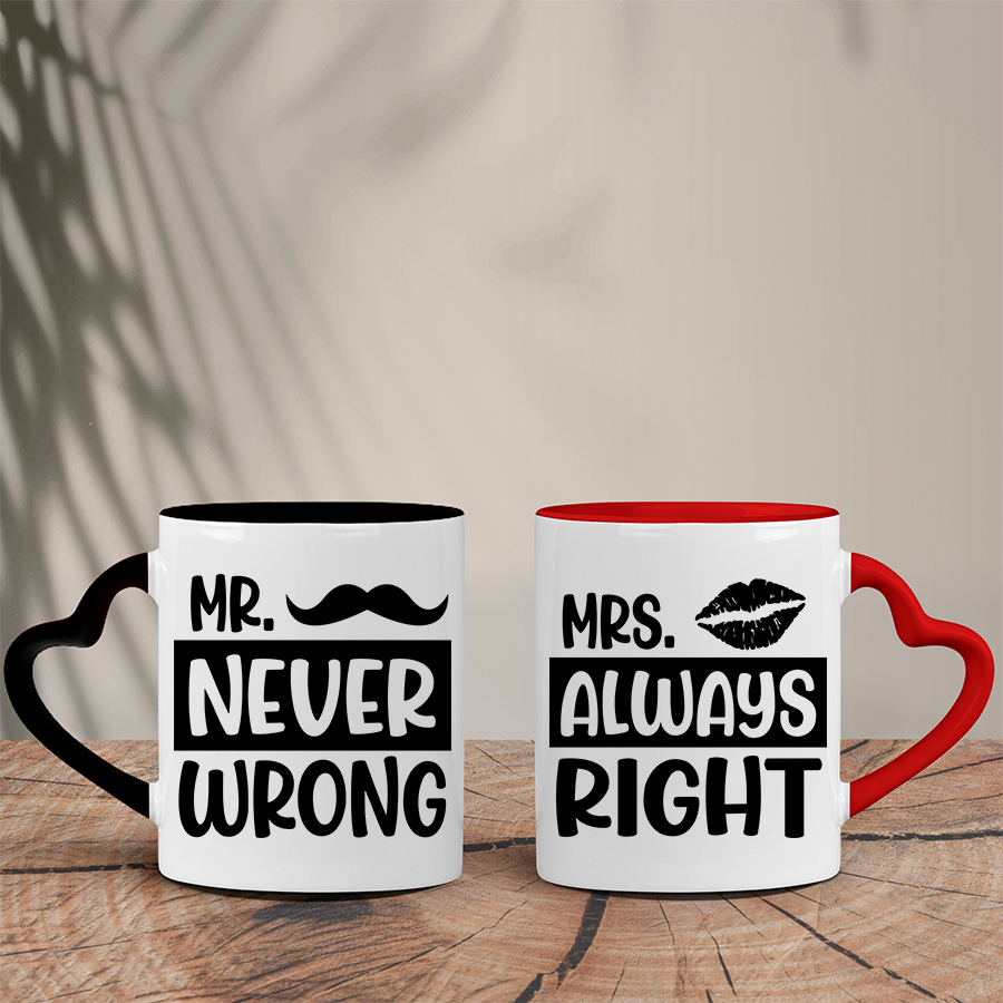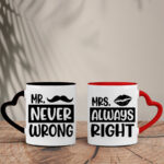 Σετ Δίχρωμες Κούπες Καρδιά | Mr. Never Wrong – Mrs Always Right