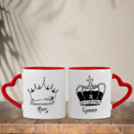 Αυτό το σετ από κεραμικές κούπες καρδιά για ζευγάρια, με την επιγραφή “King” και “Queen”, είναι ο ιδανικός τρόπος να ξεκινάτε τη μέρα σας μαζί!