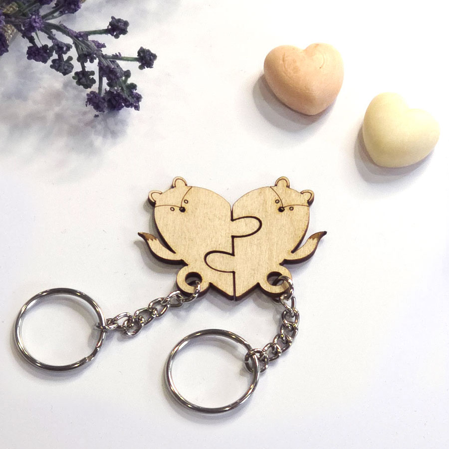 Αυτό το κομψό σετ ξύλινα μπρελόκ Αλεπούδες είναι η ιδανική επιλογή για ζευγάρια που αγαπούν τα ιδιαίτερα και συμβολικά σχέδια!