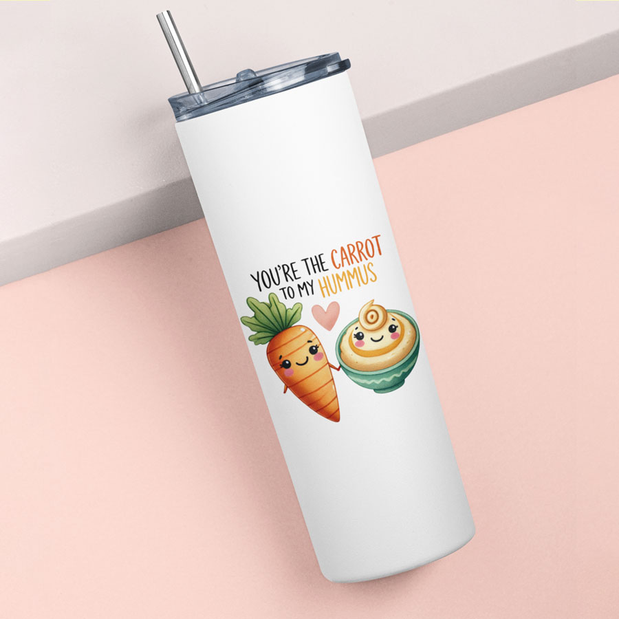 Το tumbler θερμός “Carrot to my Hummus” κρατά τα ροφήματά σας στη σωστή θερμοκρασία για ώρες, ενώ το παιχνιδιάρικο μήνυμά του φέρνει μια φρέσκια και διασκεδαστική πινελιά στην ημέρα σας.