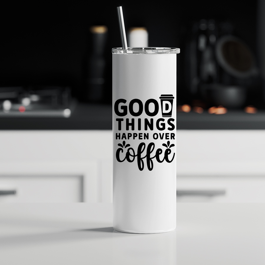Το Tumbler θερμός | Good things happen over coffee είναι η ιδανική επιλογή για όσους πιστεύουν ότι οι καλύτερες στιγμές ξεκινούν με έναν καλό καφέ!
