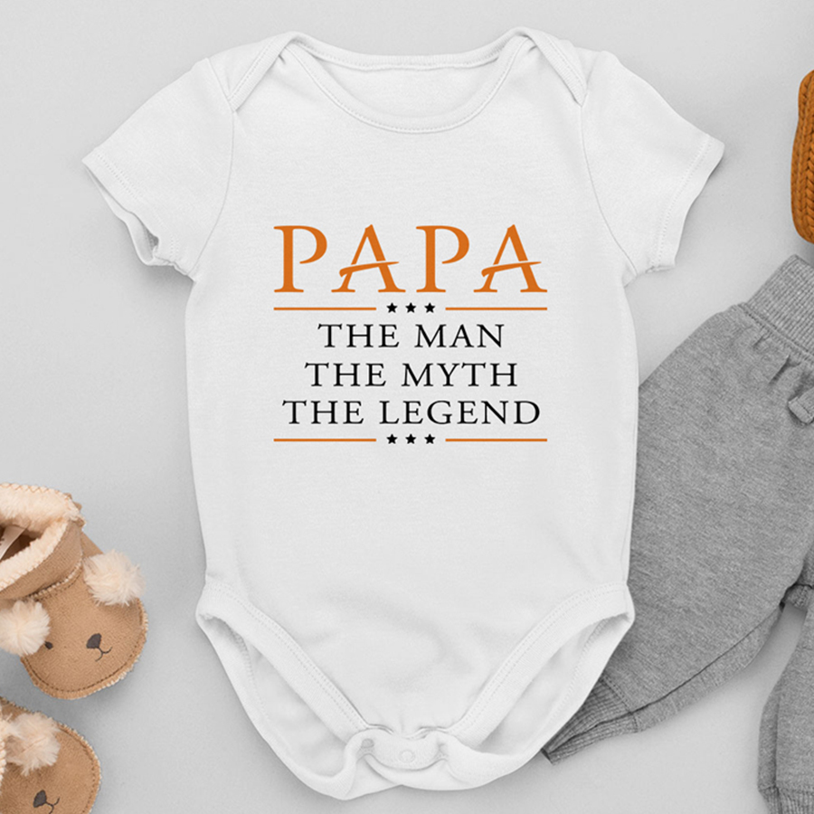 Με τη στάμπα “The Man – The Myth – The Legend”, το μικρό σας θα είναι το κέντρο προσοχής, αναδεικνύοντας με χιούμορ και στυλ τη μοναδικότητα του πατέρα του.