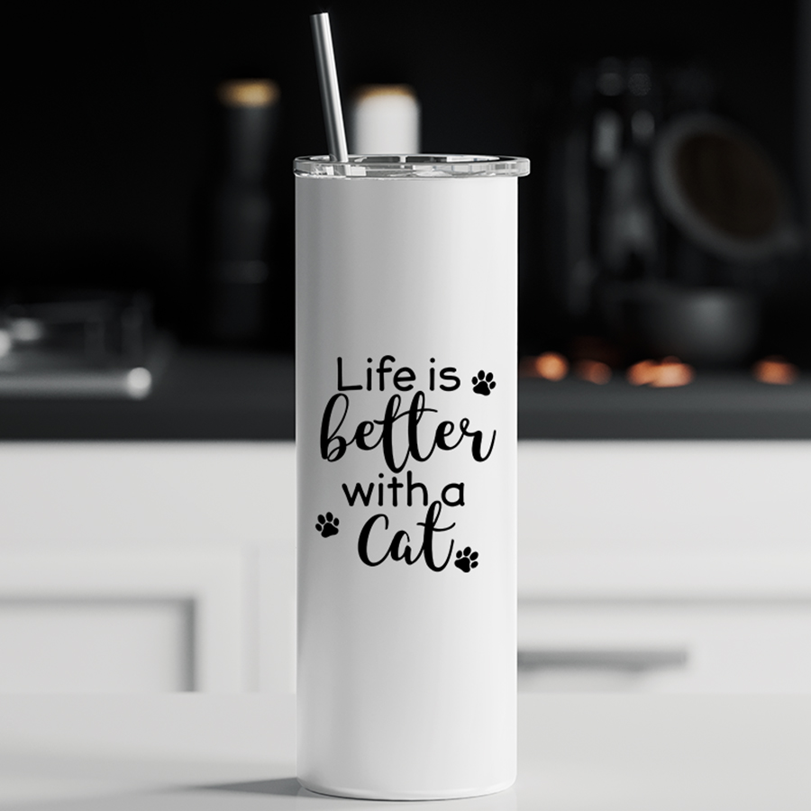 Ποτήρι θερμός μεταλλικό με καλαμάκι | Life is better with a cat
