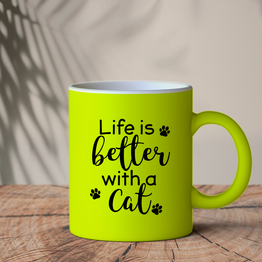 Φωσφοριζέ Κούπα Κίτρινη | Life is better with a cat