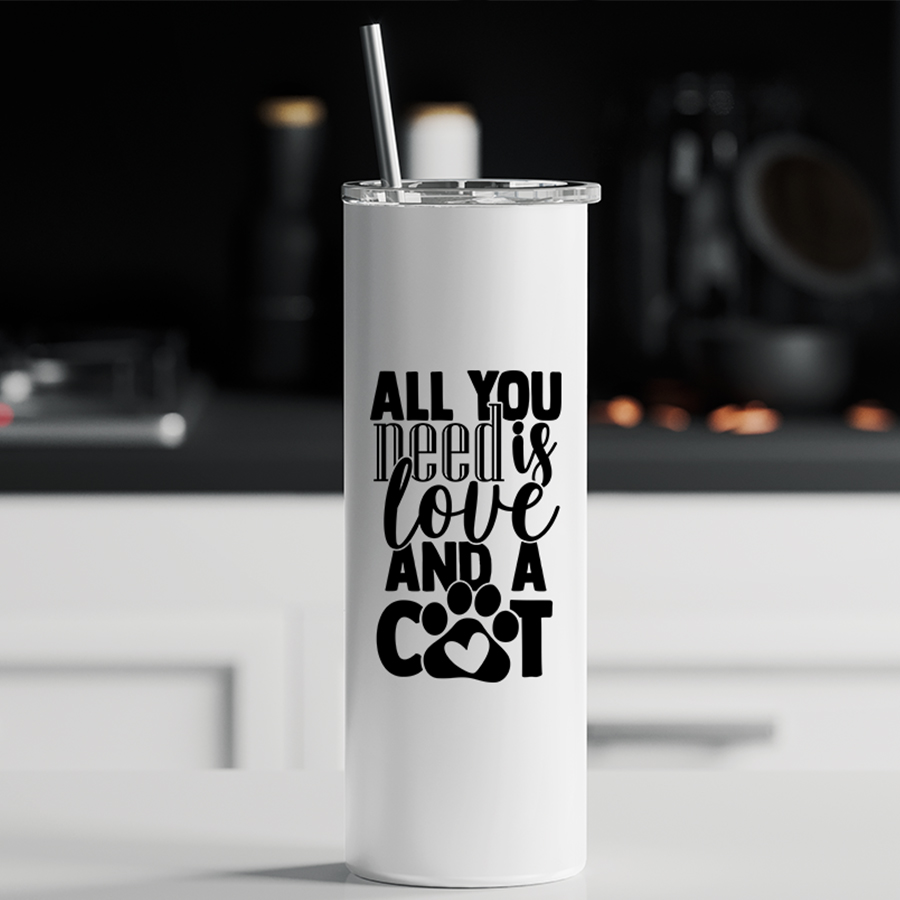 Ποτήρι θερμός μεταλλικό με καλαμάκι | All you need is love and a cat