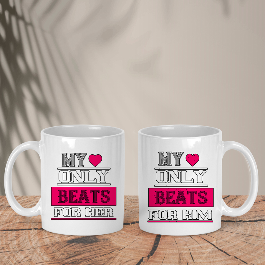 Σετ Λευκές Κούπες | My heart only beats for him -her