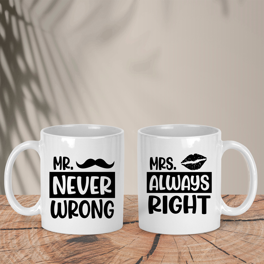 Σετ Λευκές Κούπες | Mr. Never Wrong – Mrs Always Right