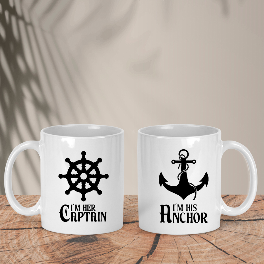 Σετ Λευκές Κούπες | Her Captain – His Anchor