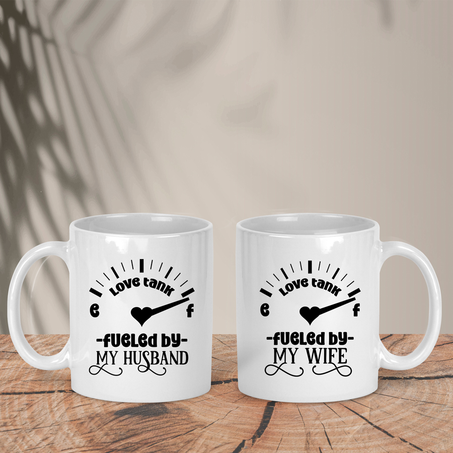 Σετ Λευκές Κούπες | Love Tank Fueled by my Husband – Wife