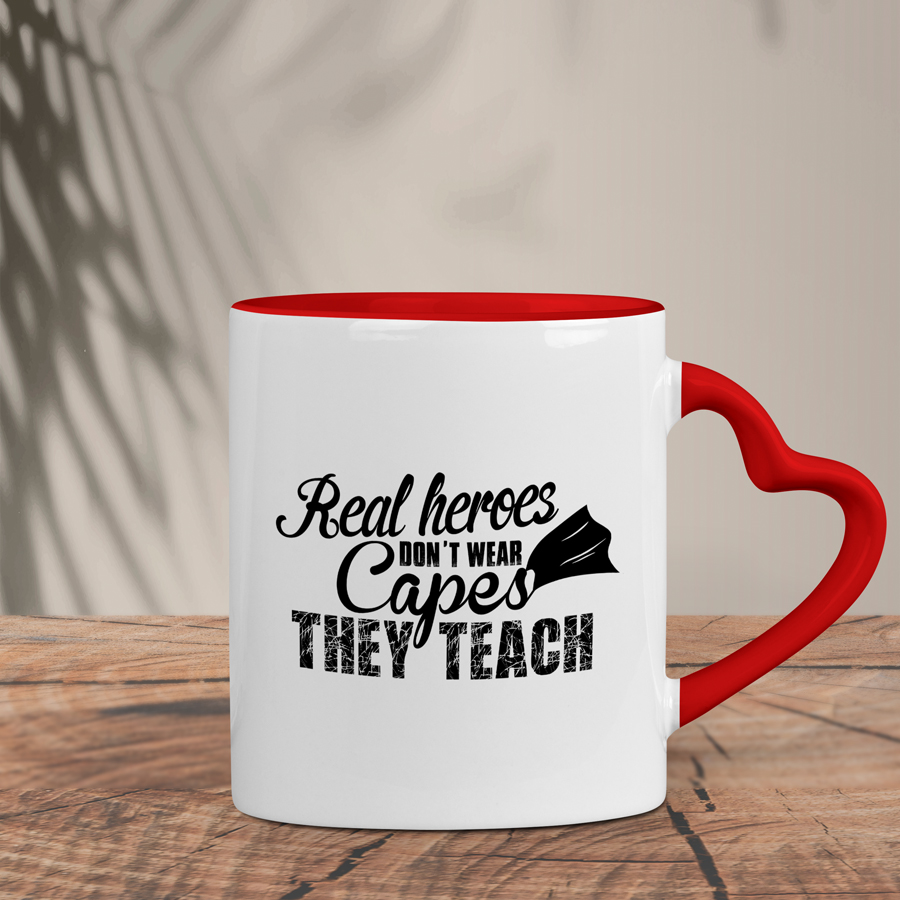 Δίχρωμη Κούπα Καρδιά | Real heroes don’t wear capes they teach