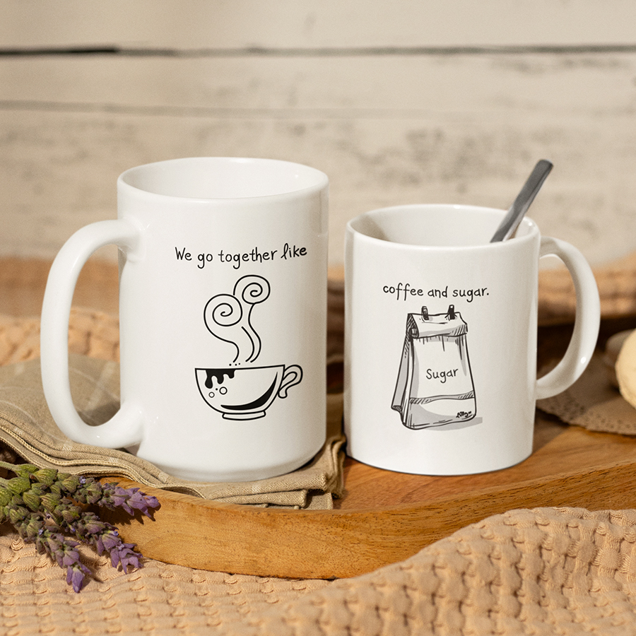 Σετ Λευκές Κούπες King-size & Queen-size | Coffee & Sugar