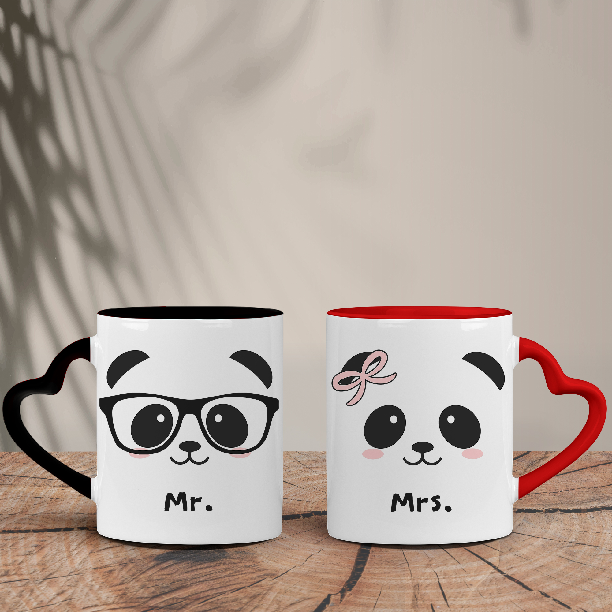 Σετ Δίχρωμες Κούπες Καρδιά | Panda Faces