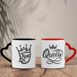 Σετ Δίχρωμες Κούπες Καρδιά | King & Queen