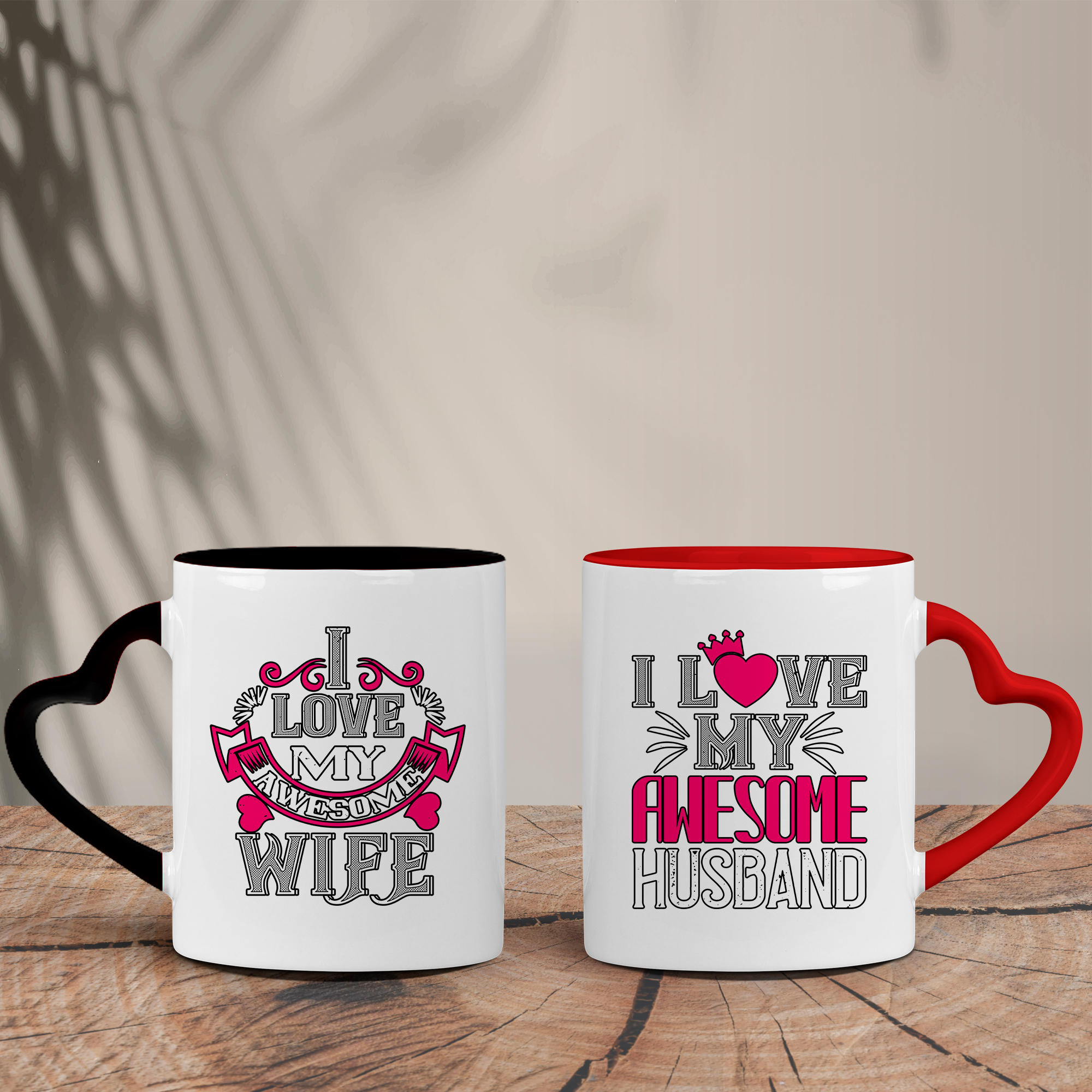 Σετ Δίχρωμες Κούπες Καρδιά | Awesome Husband/Wife