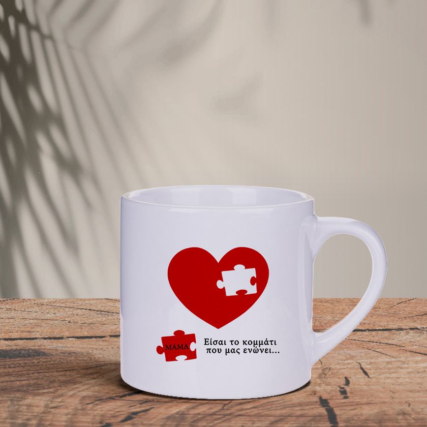 Η κούπα Είσαι το κομμάτι που μας ενώνει είναι ένας τρυφερός τρόπος να δείξετε στη μαμά σας πόσο πολύτιμη είναι για την οικογένεια!