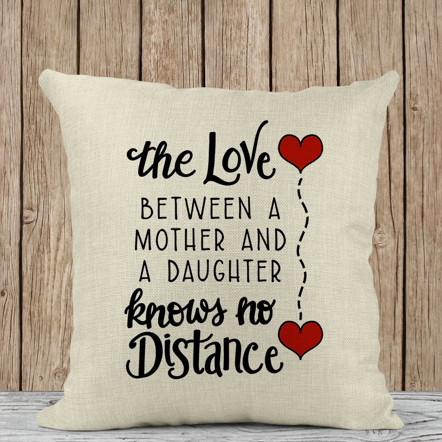 Το διακοσμητικό μαξιλάρι “The love between a mother and a daughter knows no distance” είναι η τέλεια επιλογή για να εκφράσετε τη βαθιά και ανεξίτηλη αγάπη ανάμεσα σε μητέρα και κόρη.