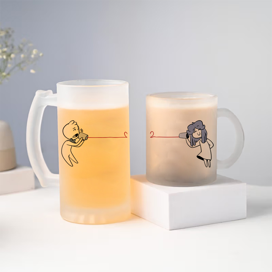 Το σετ I Love You περιλαμβάνει ένα ποτήρι μπύρας 470ml και μία γυάλινη κούπα 330ml, ιδανικό για ζευγάρια που θέλουν να εκφράζουν την αγάπη τους σε κάθε γουλιά!