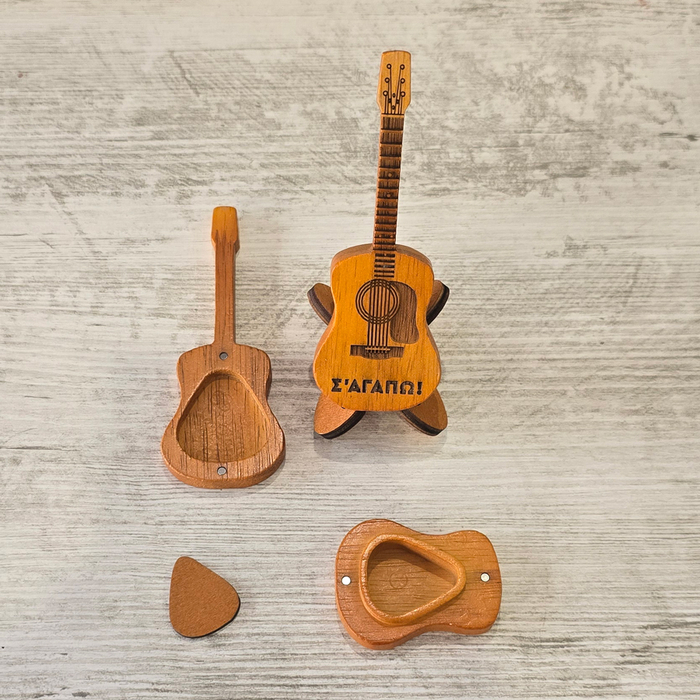 Ξύλινη Χαραγμένη Θήκη Πένας Κιθάρας – Ένα Δώρο που Παίζει Στις Καρδιές τους!